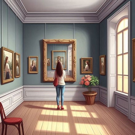 In an art gallery, a girl gazes at a portrait and slowly realizes that the painting’s background is identical to the room she is standing in only she herself is missing from it.