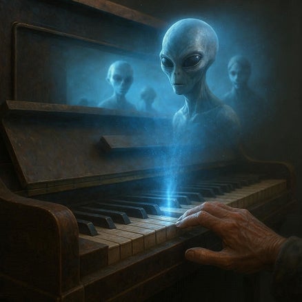 An old, dusty piano projects a fleeting memory into the air with every keystroke fragments from the lives of strangers.